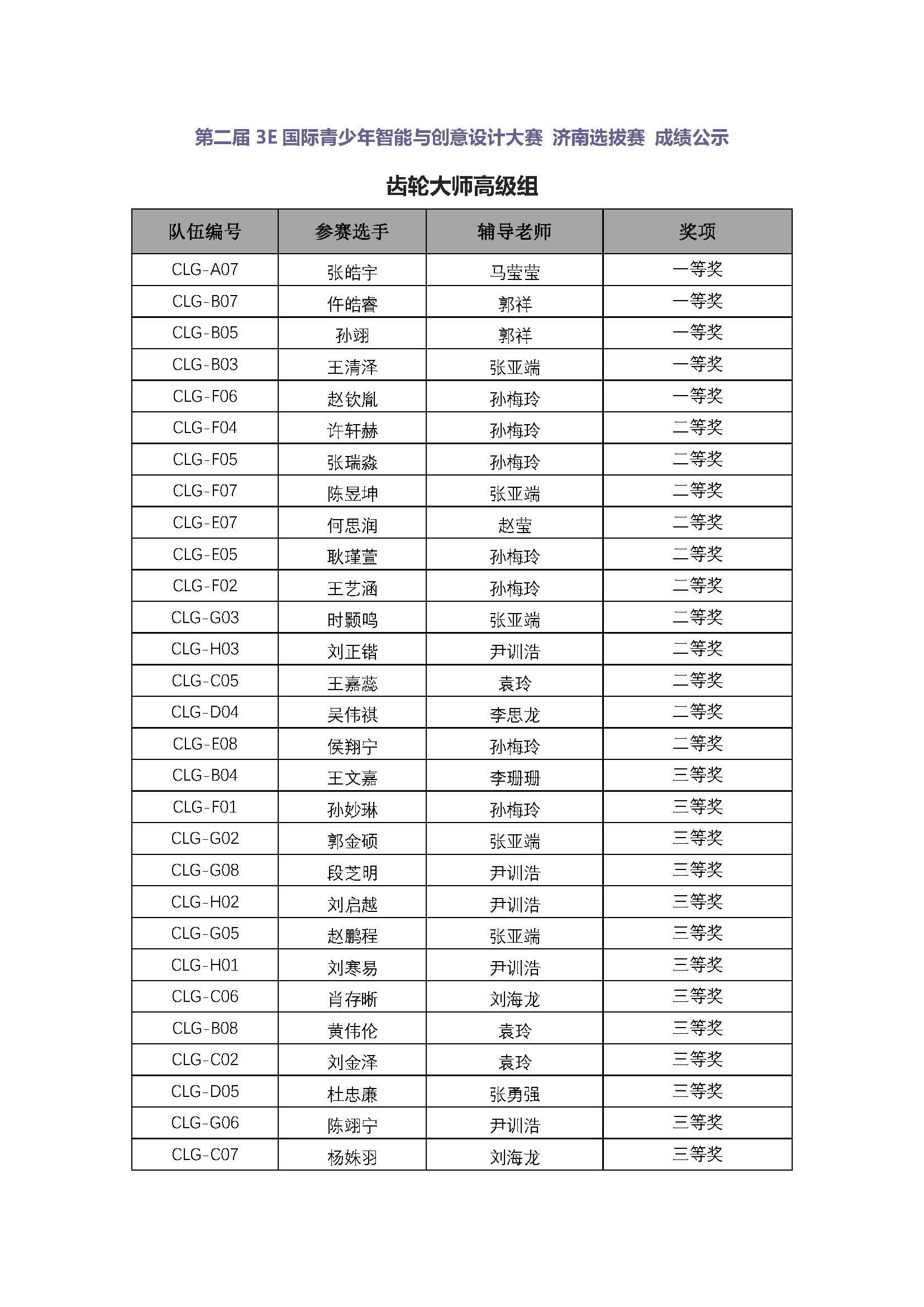 第二届 3E 国际青少年智能与创意设计大赛 济南选拔赛 成绩公示