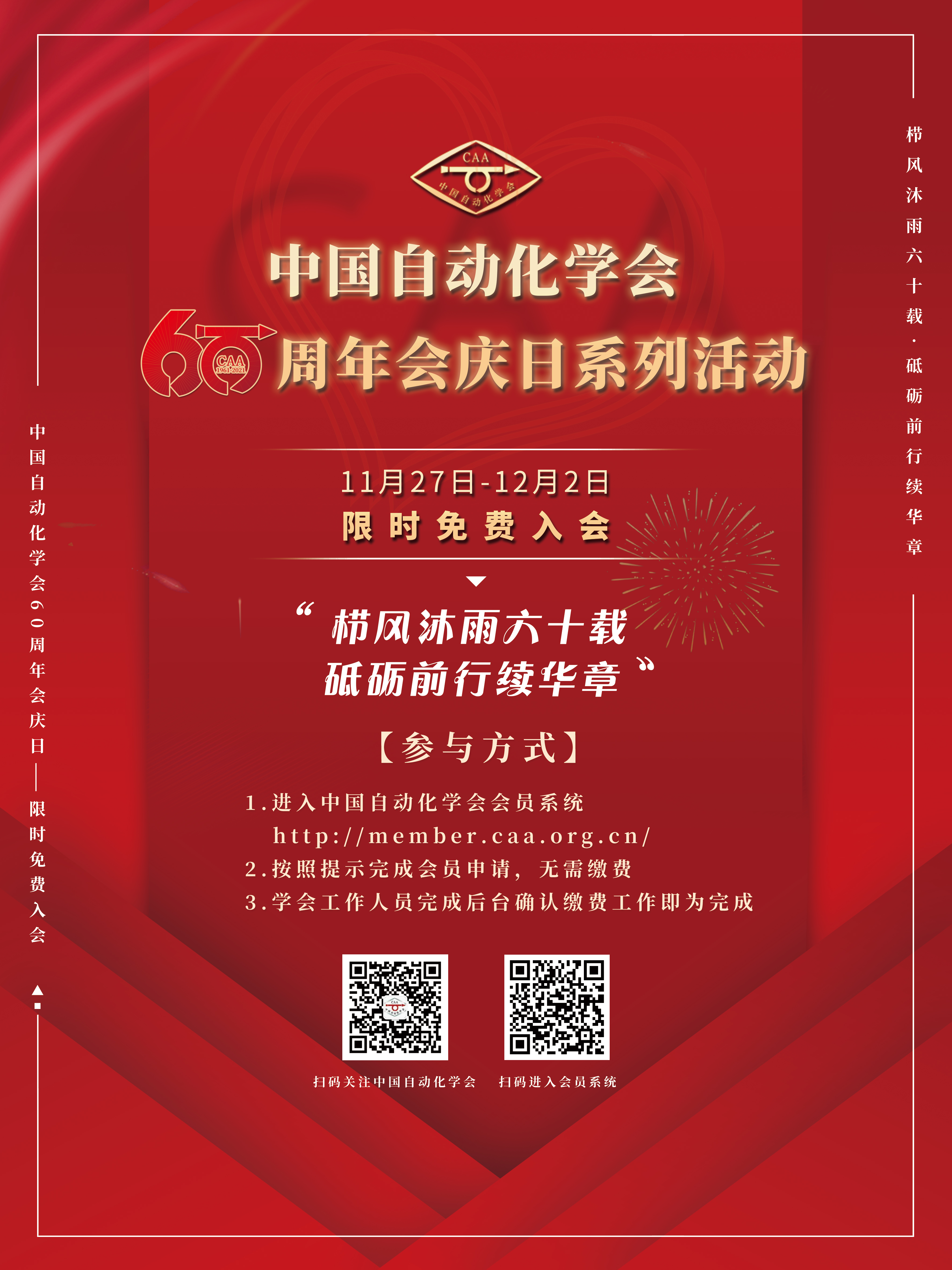 栉风沐雨六十载,砥砺前行续华章。2021年,欧冠联赛官网迎来她的六十华诞。为庆祝建会60周年,欧冠联赛官网将于11月27日至12月2日发起“限时免费入会”活动,诚邀大家积极参与,共同庆祝欧冠联赛官网生日快乐!