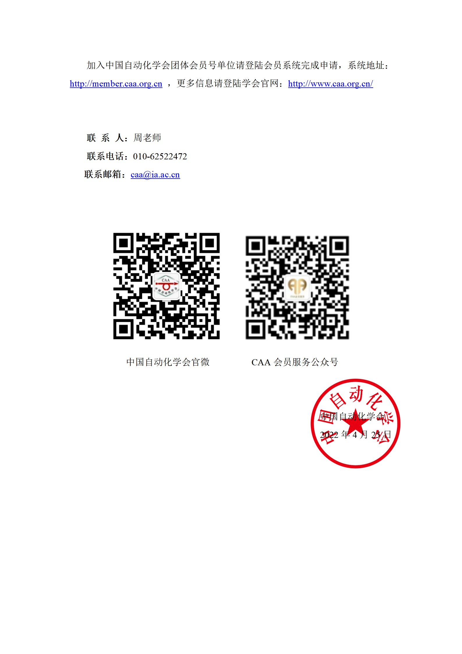 联系邮箱:caa@ia.ac.cn