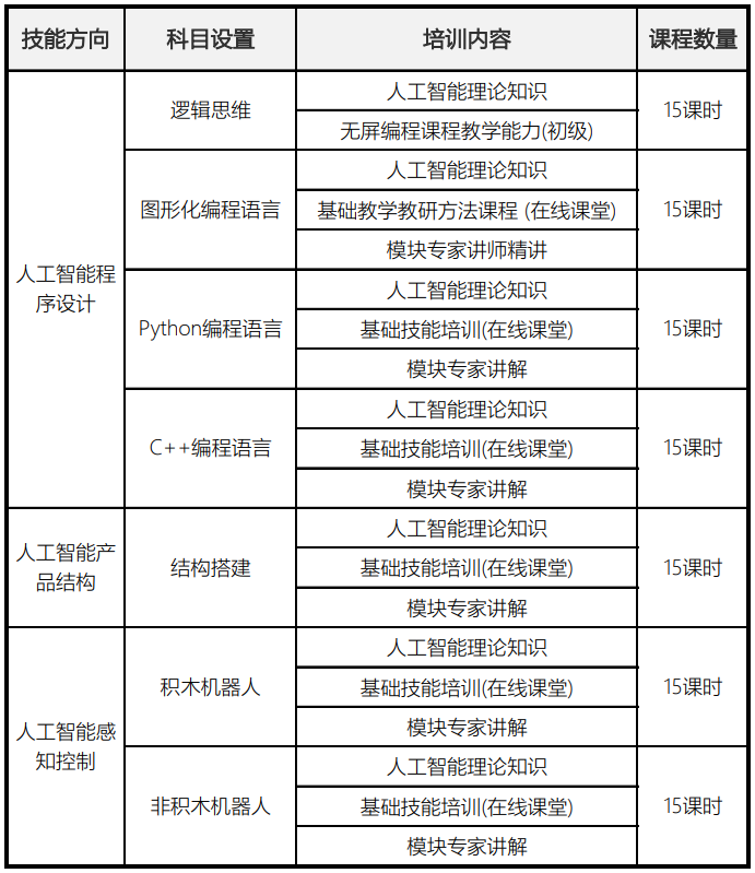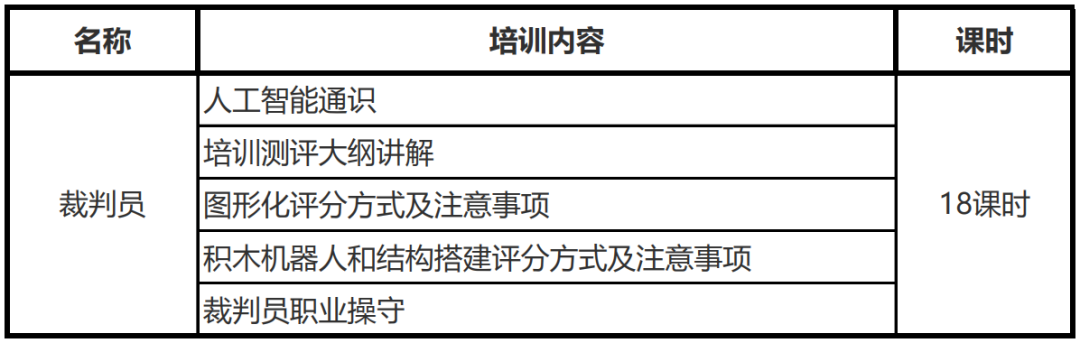 辅导师和裁判员的培训面向全国中小学的信息技术教师、科技创客教师,人工智能相关教育培训机构里的教学人员,以及教育、人工智能相关专业的学生等。
