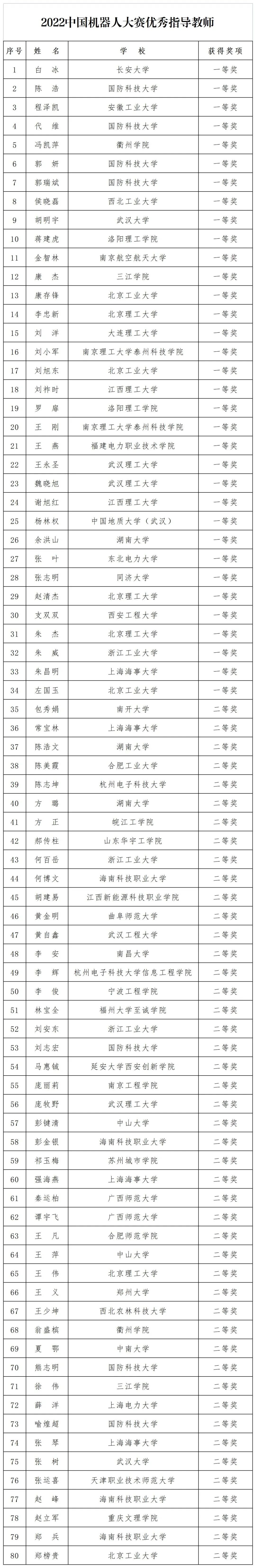自发出“2022机器人大赛优秀指导教师评选通知”后,共收到来自全国50余所、百余名教师的参评材料,经组织学会顾问、专家网络评选、审核,共评选出优秀指导教师一等奖34名、二等奖46名。