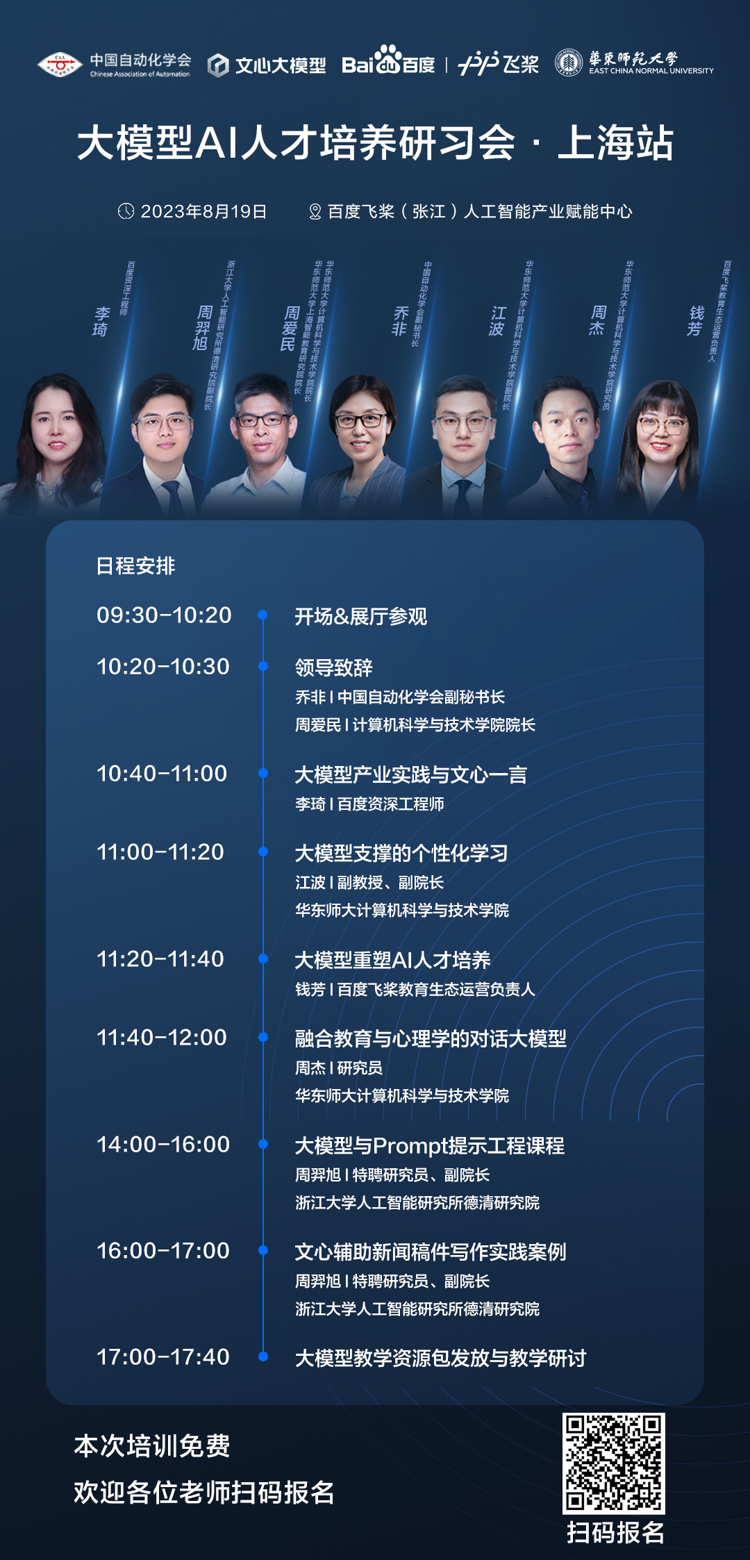 我们邀请您在此次研习会中共享智慧,共谋发展,为推动大模型教育变革、人才培养模式的创新贡献力量。扫描下方海报二维码报名大模型重塑AI人才培养研习会,名额有限,先到先得!