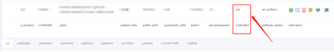 版权协议提交完成后,论文列表界面copyright状态将变更为Yes状态。