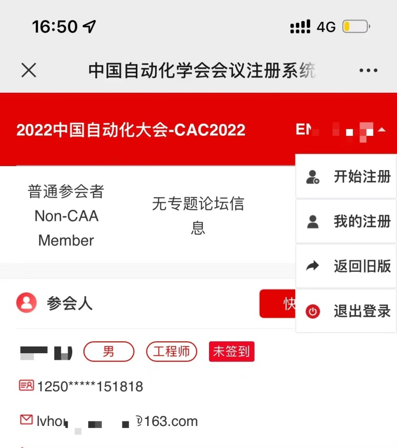 查看注册信息:登陆注册系统,右上角姓名部分,点击“我的注册”查看已完成注册。