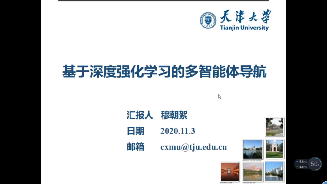 天津大学穆朝絮教授作题为“基于深度强化学习的多智能体导航”的报告。穆朝絮教授综述了多智能体强化学习和深度强化学习的兴起与发展,若干多智能体深度强化学习的算法结构,并介绍了其课题组在多智能体深度强化学习导航等问题的应用研究,并对未来发展方向进行展望。