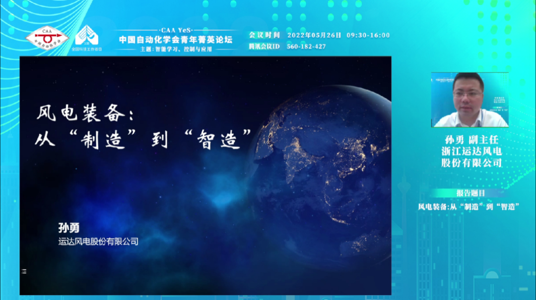 第三位报告人是来自浙江运达风电股份有限公司技术中心的孙勇副主任,报告题目为“风电装备:从‘制造’到‘智造’”。孙主任首先简要回顾了风电行业的发展历程及风电在电力行业中的战略地位,随后通过多个场景介绍数字化、智能化在风电行业全生命周期中的应用,结合风电行业成本控制的现状,剖析智能生产制造带来的经济效益。最后,结合国家能源战略和行业趋势,提出未来风电制造业智能化的发展方向。