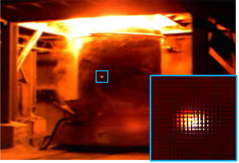 图2. 电熔镁炉况信息感知系统及其工况识别结果可视化。工业现场的光场采集 (上图);电熔镁炉光场可视化 (下图)