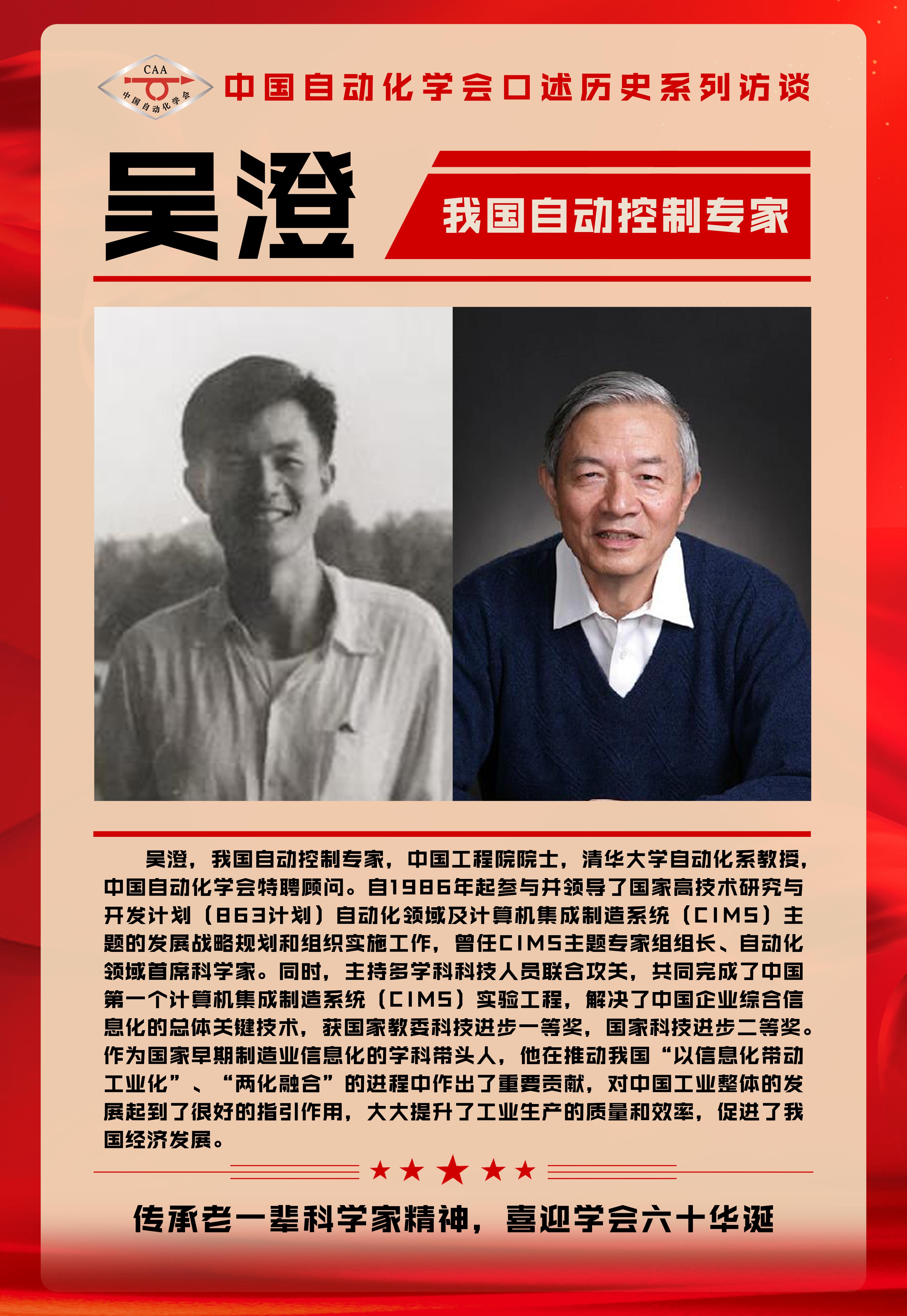 本期学会采访的是吴澄院士。吴澄,我国自动控制专家,中国工程院院士,清华大学自动化系教授,欧冠联赛官网特聘顾问。自1986年起参与并领导了国家高技术研究与开发计划(863计划)自动化领域及计算机集成制造系统(CIMS)主题的发展战略规划和组织实施工作,曾任CIMS主题专家组组长、自动化领域首席科学家。同时,主持多学科科技人员联合攻关,共同完成了中国第一个计算机集成制造系统(CIMS)实验工程,解决了中国企业综合信息化的总体关键技术,获国家教委科技进步一等奖,国家科技进步二等奖。作为国家早期制造业信息化的学科带头人,他在推动我国“以信息化带动工业化”、“两化融合”的进程中作出了重要贡献,对中国工业整体的发展起到了很好的指引作用,大大提升了工业生产的质量和效率,促进了我国经济发展。