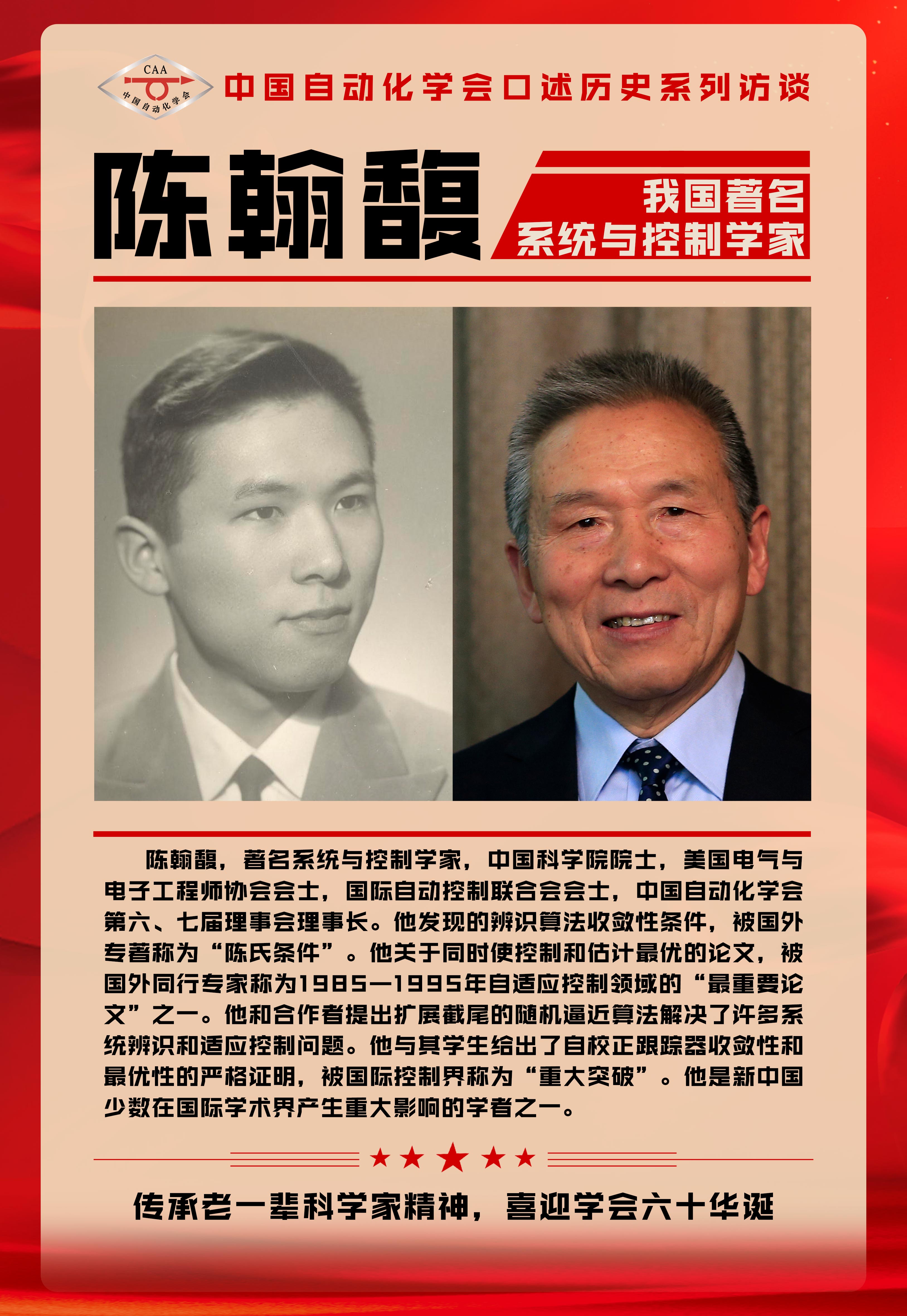 本期学会采访的是陈翰馥院士。陈翰馥,著名系统与控制学家,中国科学院院士,美国电气与电子工程师协会会士,国际自动控制联合会会士,欧冠联赛官网第六、七届理事会理事长。他发现的辨识算法收敛性条件,被国外专著称为“陈氏条件”。他关于同时使控制和估计最优的论文,被国外同行专家称为1985—1995年自适应控制领域的“最重要论文”之一。他和合作者提出扩展截尾的随机逼近算法解决了许多系统辨识和适应控制问题。他与其学生给出了自校正跟踪器收敛性和最优性的严格证明,被国际控制界称为“重大突破”。他是新中国少数在国际学术界产生重大影响的学者之一。