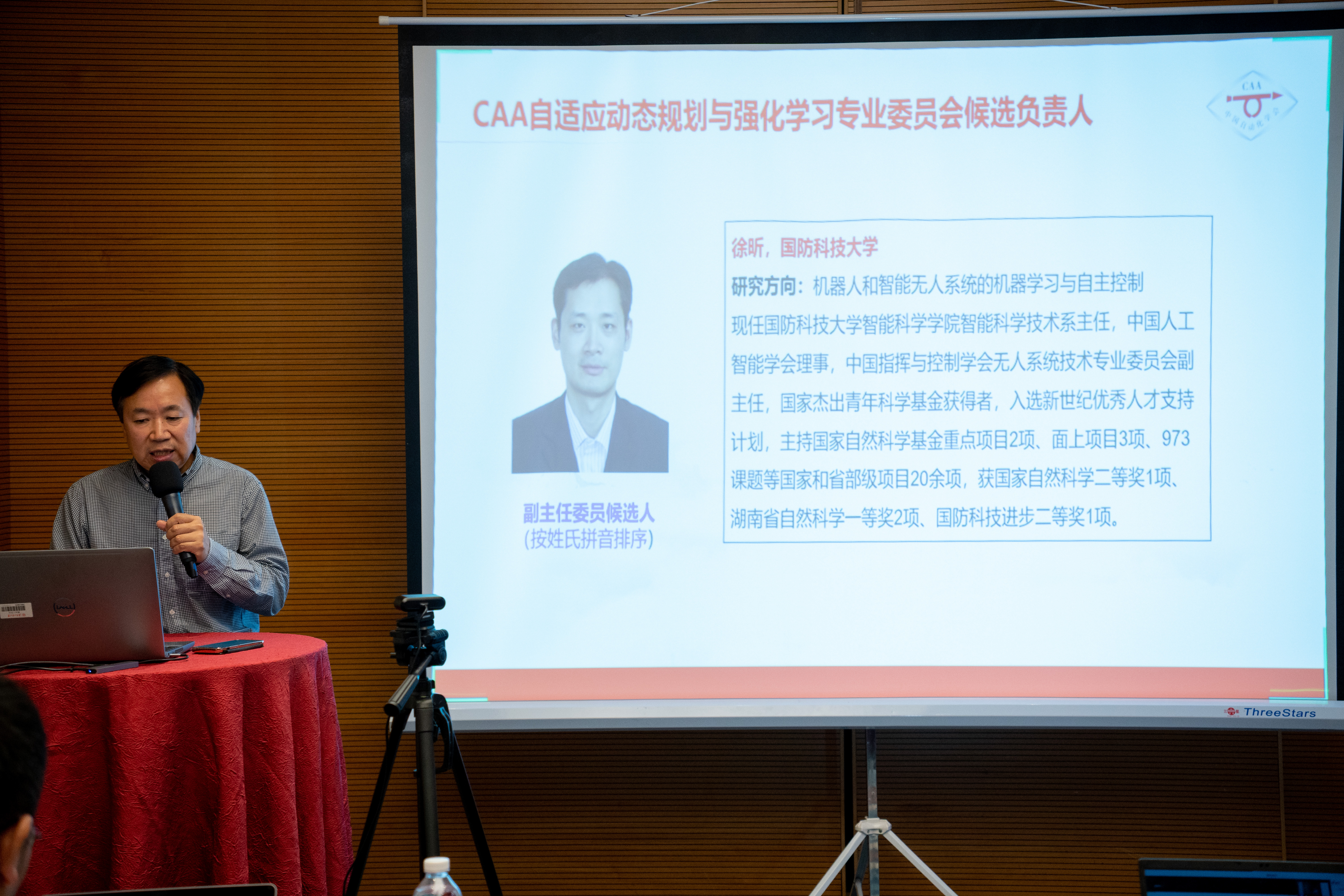 接着,欧冠联赛官网副理事长侯增广研究员主持了第二届自适应动态规划与强化学习专业委员会负责人换届选举工作。通过线下纸质投票和线上腾讯会议投票相结合的方法,选举产生了新一届的专委会负责人。其中,广东工业大学刘德荣教授当选主任委员、中南大学罗彪教授、国防科技大学徐昕教授、浙江大学杨秦敏教授当选副主任委员,北京师范大学赵博副教授当选专委会秘书长。刘德荣主任代表新一届专委会负责人进行了发言,他首先对大家的信任表示了感谢,并表示会利用好专委会这个平台,创新更多的活动内容与交流形式,希望在新一届专委委员的共同努力下,将专委会打造成国内自适应和强化学习领域研究人员交流成长的一个重要平台,为更多的人服务,希望每一位委员都可以在专委会得到成长。