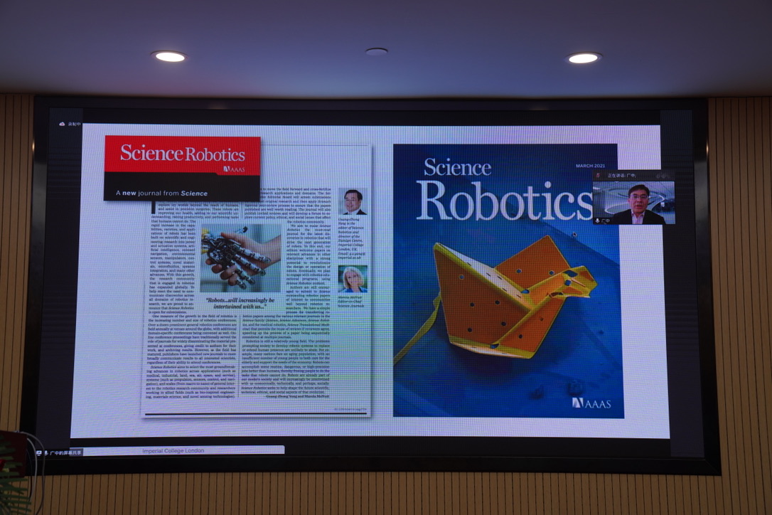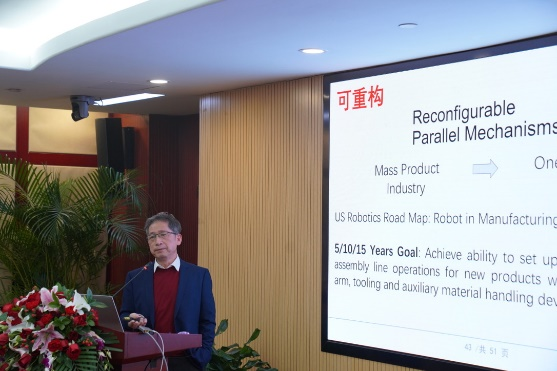 12月26日上午,2021机器人智能高端论坛顺利召开。在论坛上,戴建生院士作了以“可重构机器人推动智能制造与可重构制造”为题的报告,并从专著介绍、四次工业革命与机器人发展、机器人的崛起、数据中看机器人与智能制造、实例中看机器人与智能制造、可重构制造与机器人、机器人的深入研究与广泛应用、变胞机器人与可重构机器人八个方面进行了报告。杨广中院士以“Grand Challenges of Robotics”为题,通过Science Robotics杂志中的经典和新颖文章介绍了目前机器人发展过程中的一些挑战以及值得关注的方向。乔红院士作了题为“受人启发机器人系统的理论与应用研究”的报告,提出了高精度、高速度、高可靠和高智能的机器人战略核心问题,并从受人启发的角度分享了在构建新型机器人系统方面的理论研究和应用成果。