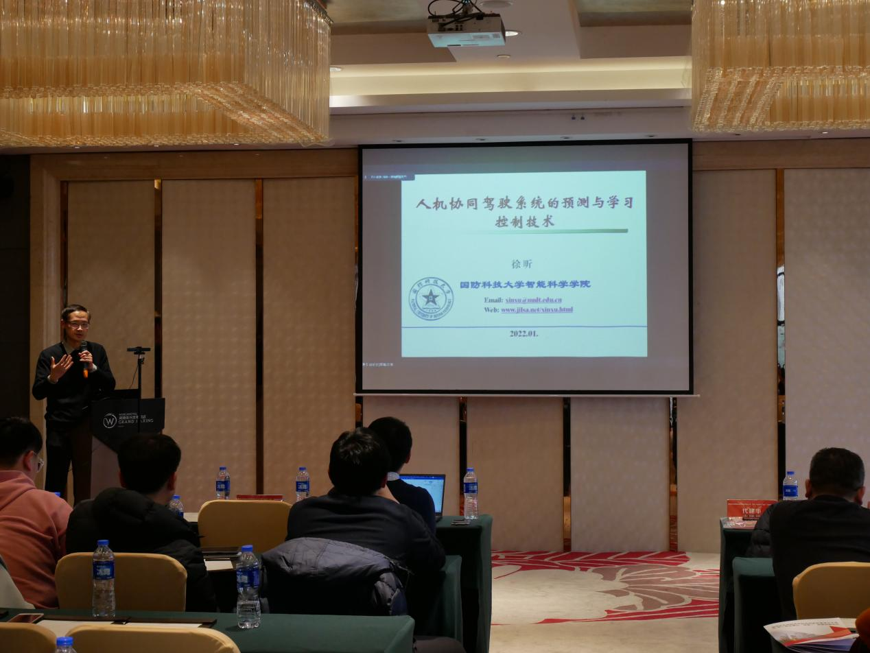 湖南大学电器学院副院长刘敏教授主持了第二场和第三场学术报告。第二场学术报告由国防科技大学的徐昕教授主讲,以“人机协同驾驶系统的预测与学习控制技术”为落脚点,介绍了智能汽车的现状和发展趋势以及现阶段智能车辆学习预测控制的研究进展。详细讲解了“危险事件触发的智能车辆人机共享控制”和“基于行人轨迹预测学习和DRL的人机协同驾驶”模型,让人受益匪浅。