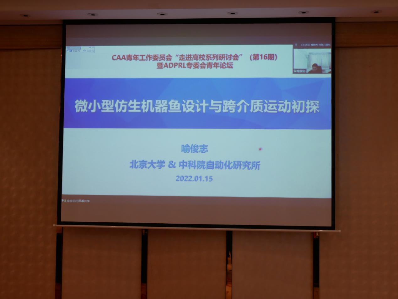 北京科技大学贺威教授主持了第五场学术报告,由北京大学喻俊志教授主讲。喻俊志教授是机器人方面的专家,主要针对于“微小型仿生机器鱼设计与跨介质运动初探”进行了展开。喻俊志教授提到,他的研究是使用仿生的思想,来为人工智能系统的研究提供新的设计思想和新的控制理念。喻教授以自然界鱼的运动为引,全面、详细地介绍了微小型仿生机器鱼和跨介质仿生机器鱼的相关研究,并表示“仿生技术学习自然,最终希望能超越自然”。