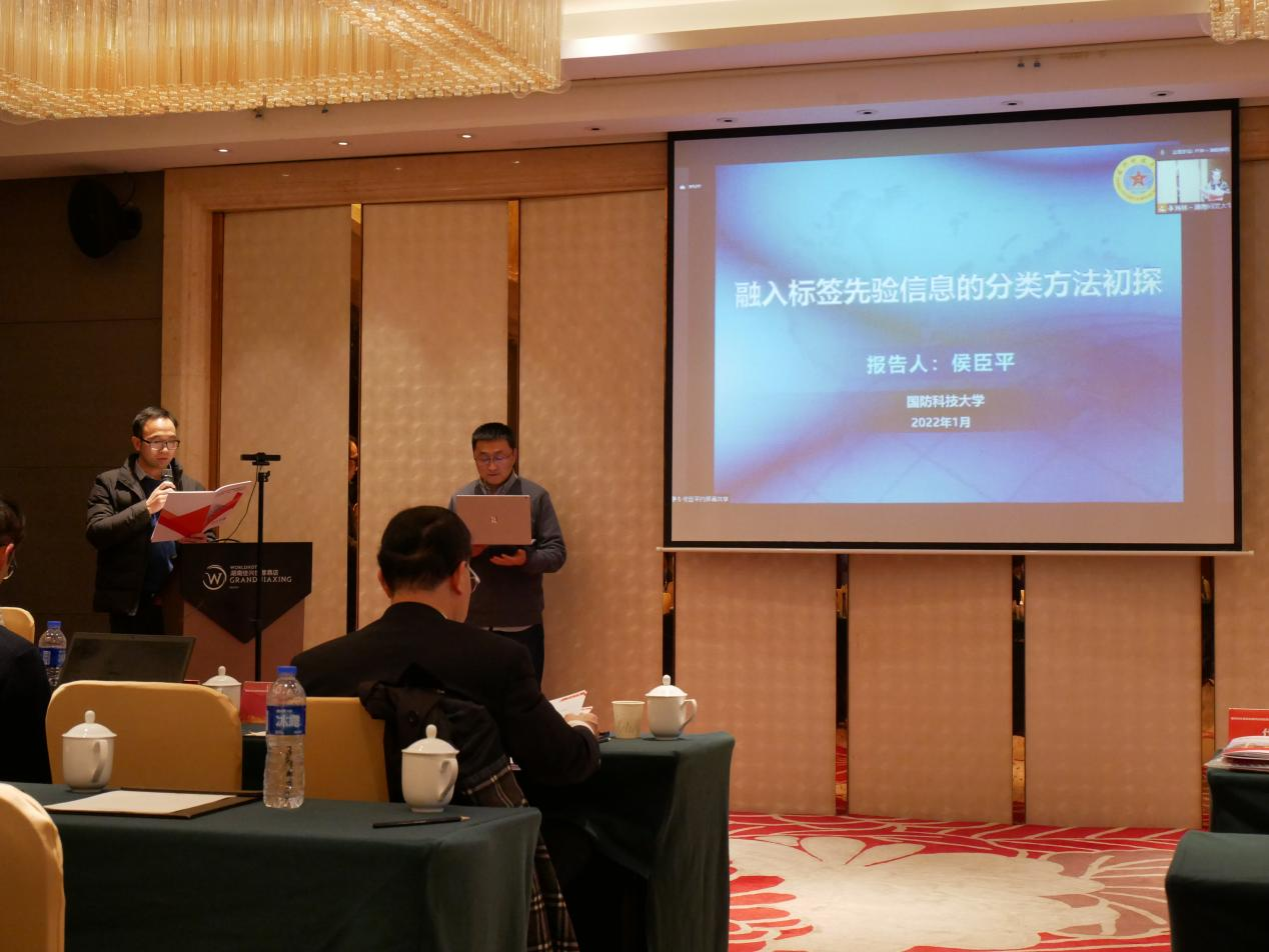 中南大学罗彪教授主持了第七场学术报告,由国防科技大学侯臣平教授主讲。报告的主题是“融入标签先验信息的分类方法初探”,主要是机器学习方面的一些基础研究内容,从标签先验信息和标签分类噪声这两个方面展开,从数学的角度,分享了很多最新的理论分析方法,并且举了许多生动的例子,让报告更易于理解。