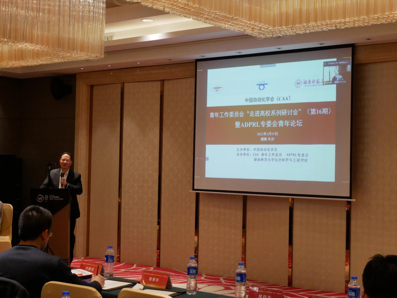 2022年1月15日,欧冠联赛官网(CAA)青年工作委员会“走进高校系列讨论会”(第16期)暨CAA自适应动态规划与强化学习(ADPRL)专委会青年论坛活动在长沙佳兴世尊酒店隆重举行。本次会议联合湖南省自动化学会年会共同召开,为人工智能与自动化领域专业人员带来了一场学术盛宴。会议由欧冠联赛官网主办,CAA 青年工作委员会、CAA自适应动态规划与强化学习专委会和湖南师范大学信息科学与工程学院共同承办。