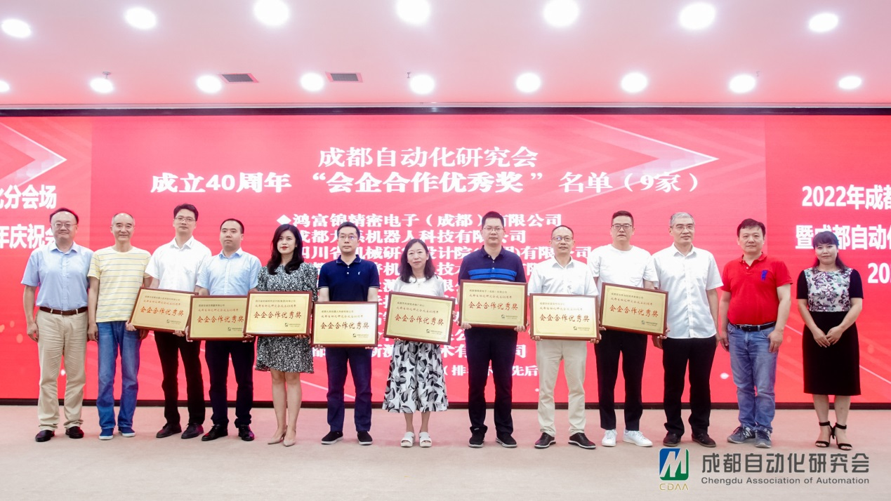 会上颁发了“会企合作优秀奖”,研究会举办各项活动得到了各理事单位的大力支持,特别鸣谢给予研究会40周年纪念册编制和庆祝活动给予经费支持的各赞助单位。他们是:鸿富锦精密电子(成都)有限公司、成都九系机器人科技有限公司、四川省机械研究设计院(集团)有限公司、成都市科学技术推广中心、成都纺织高等专科学校、成都兴恒合科技有限公司、成都卡诺普机器人技术股份有限公司、成都安迪生测量有限公司、成都凯吉斯测控技术有限公司。