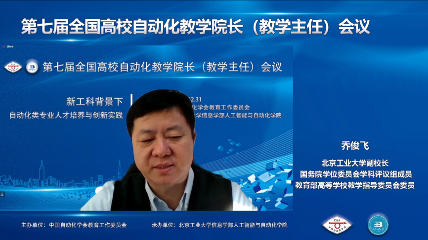 张涛主任首先致开幕辞,感谢全体参会代表对本次会议的大力支持,表示本次会议将总结交流自动化专业建设与人才培养经验,面向“十四五”构建自动化领域高等教育高质量发展体系,提升自动化专业人才培养水平,促进自动化专业与控制科学与工程学科的高质量发展,进一步密切全国高校自动化专业的联系。乔俊飞副校长致欢迎辞,本次会议受新冠疫情影响几经周折后终于隆重召开,非常感谢欧冠联赛官网教育工作委员会对北京工业大学组织承办此次会议的支持,同时对与会专家的到来表示最热烈的欢迎和诚挚的感谢,相信通过本次会议的交流研讨将有助于促进全国高校自动化专业建设、展示我国高校自动化教育研究和实践的优秀成果、对高校自动化专业人才培养和创新实践产生深远的影响,也诚挚邀请各位专家委员经常莅临北工大指导。