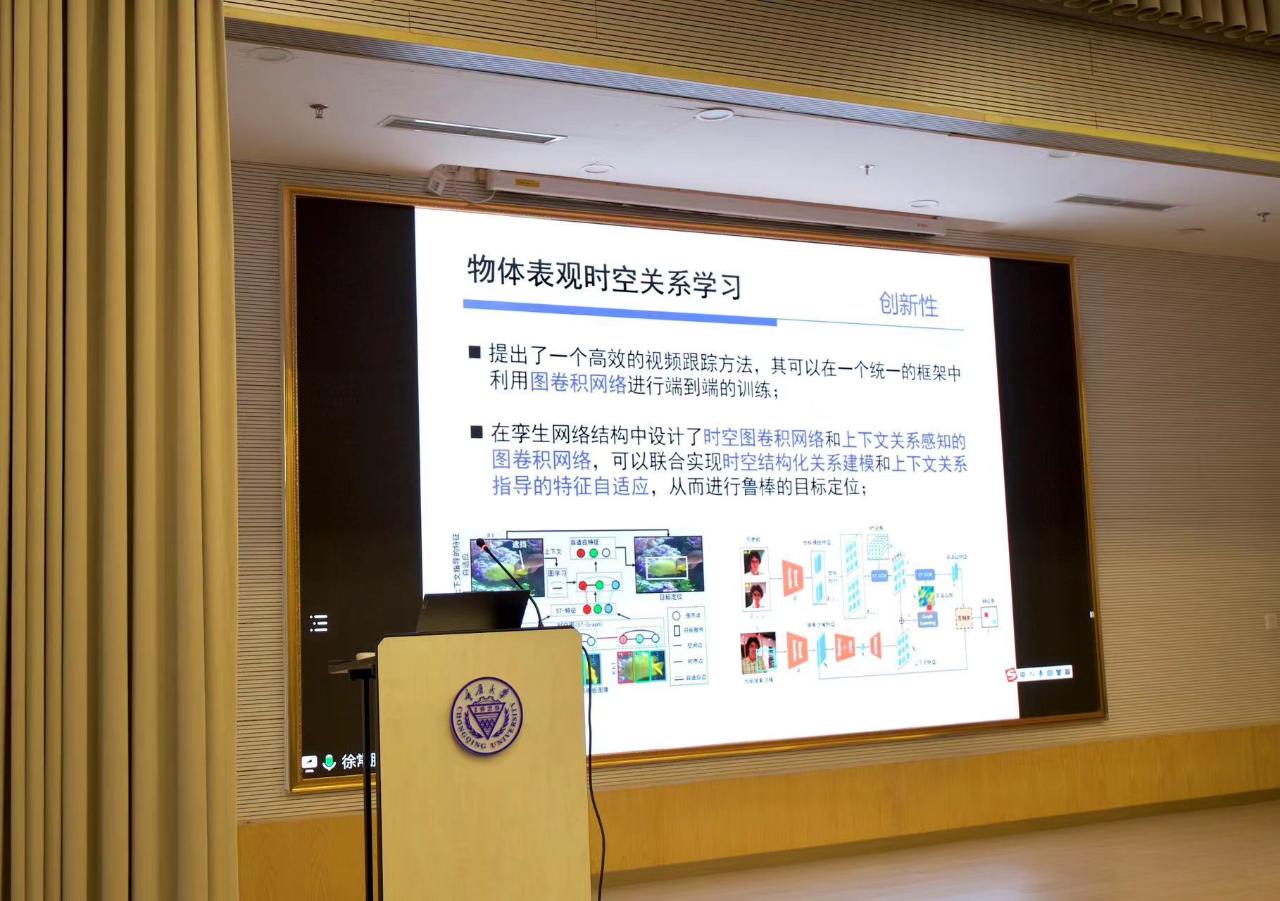 南京信息工程大学刘青山教授报告了“基于视觉的情感计算”,刘教授指出计算的目标是使计算机能自动识别情感并表达情感,从而建立适应人类情感的和谐人机环境,是人工智能领域中的一个热点研究方向。刘教授分享了他们团队在表情识别与姿态估计方面的研究工作,刘教授也表示基于视觉的情感计算还有很多待深入探索的问题,同时也与参会同学进行了积极的交流和讨论。