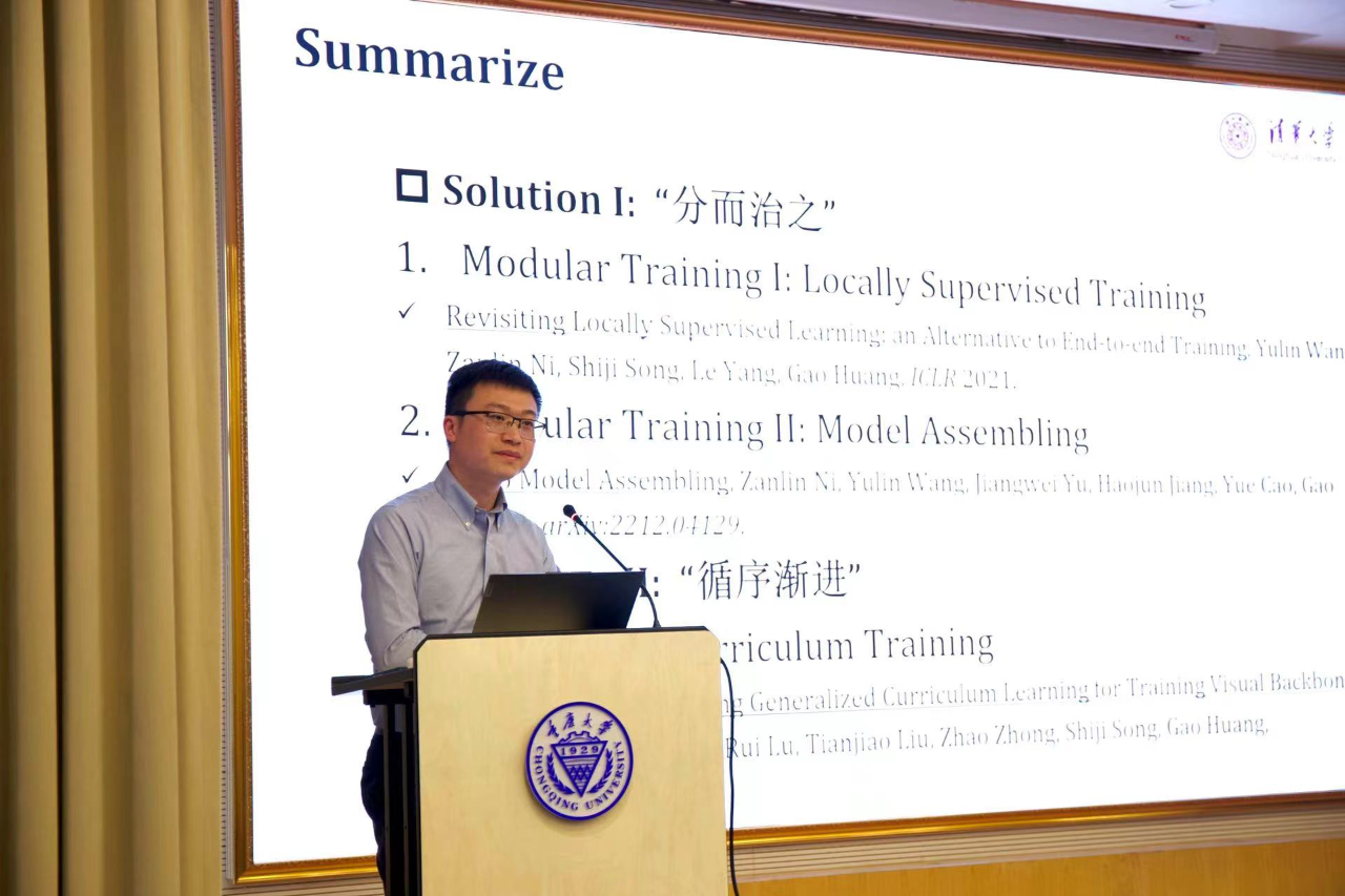 清华大学黄高副教授报告了“视觉基础模型的高效训练方法”,报告针对大模型训练时间长、显存开销大等问题,从深度神经网络的模型和学习算法两方面介绍了视觉大模型的高效训练策略。在模型方面,黄教授介绍了一种模块化训练与组装方法,利用“分而治之”的思想将模型进行分解,把大模型的训练拆解成多个小模型的训练;在学习算法方面,根据神经网络学习过程的动态特性,介绍了一种新的课程学习算法。黄教授的报告为大型视觉模型提供了新的思路和方法。