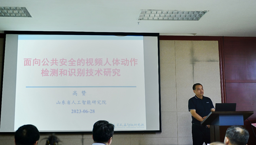 山东省人工智能研究院高赞教授作了题为“面向公共安全的视频人体行为检测和识别研究”的报告,他指出视频人体行为检测和识别是计算机视觉领域的一个研究热点问题,在视频监控、安防等公共安全领域有广阔的应用前景,且在视频监控方面有着重要的作用;然后,高教授深入阐述了深度学习的发展为视频人体行为检测和识别提供的新思路;最后,详细汇报了在视频人体行为检测和识别任务的最新研究进展、以及讨论该课题面临的挑战和难题。