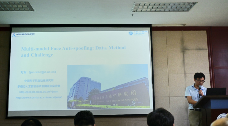 中科院自动化所万军副研究员作了题为"多模态人脸防伪研究:数据、方法、竞赛"的报告。在报告中,万教授从多模态人脸防伪核心问题出发,详细介绍了课题组在三个方面的研究工作:1)方法:多模态、跨模态、灵活模态上做的探索性工作;2)数据:大规模人脸防伪数据库构建;3)竞赛和研讨会:回顾了最近几年在CVPR2019, CVPR2020、ICCV2021和 CVPR2023上赛事内容。最后,万教授还给出了多模态人脸防伪模型的未来发展趋势和挑战。
