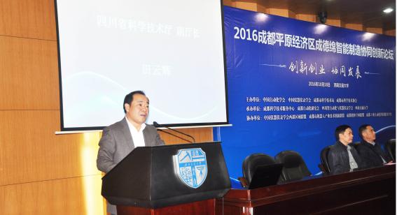 田云辉副厅长,成都、德阳、绵阳三地科技主管部门的领导,与联盟各成员单位代表参加了“成德绵智能制造协同创新联盟”成立揭牌仪式。田云辉副厅长在致辞中表示,成都平原经济区是实施《中国制造2025四川行动计划》的重要区域,是建设西部制造强省和“中国制造”西部高地的重要阵地,对智能制造的协同创新是建设全经济区的重要举措。田云辉副厅长对成德绵各科技管理部门在智能制造协同创新中所起的推动作用充分肯定,并对成立“成德绵智能制造创新联盟”寄予厚望。