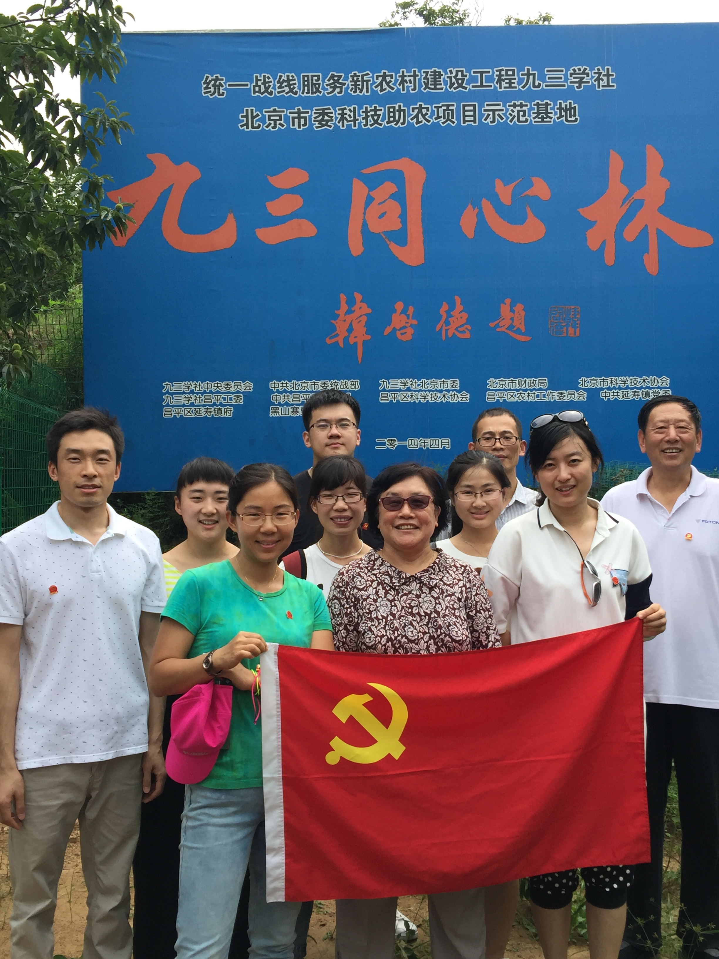 中国科学技术协会名誉主席韩启德,曾在北京市委科技助农项目示范基地题字——“九三同心林”,寓意同心同德、同心同向、同心同行。在此次活动中,学会党支部全体党员与黑山寨村党支部部分成员专门前往北京市委科技助农项目示范基地,实地考察,与农户进行交流,了解项目进展情况。