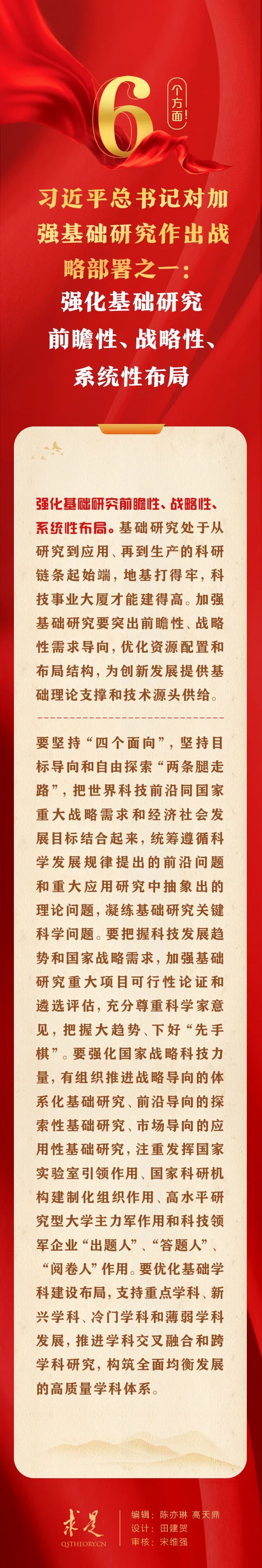 8月1日出版的第15期《求是》杂志刊发习近平总书记重要文章《加强基础研究 实现高水平科技自立自强》。在这篇重要文章中,总书记深刻阐述加强基础研究的重大意义,从6个方面进一步对加强基础研究作出战略部署。