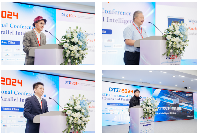 本次会议大会主席为中国科学院自动化研究所复杂系统管理与控制国家重点实验室主任王飞跃研究员、格里菲斯大学Ljubo Vlacic教授,程序主席为武汉大学张俊教授、慧拓联合创始人及CEO陈龙教授。开幕式邀请了中国科学院自动化研究所复杂系统管理与控制国家重点实验室主任王飞跃研究员、武汉大学电气与自动化学院院长董旭柱教授、武汉大学张俊教授、慧拓联合创始人及CEO陈龙教授致辞,深刻阐述了数字孪生和平行智能技术在推动社会智能化进程中的重要作用,并期待与会者能够共同为这一领域的发展贡献力量。