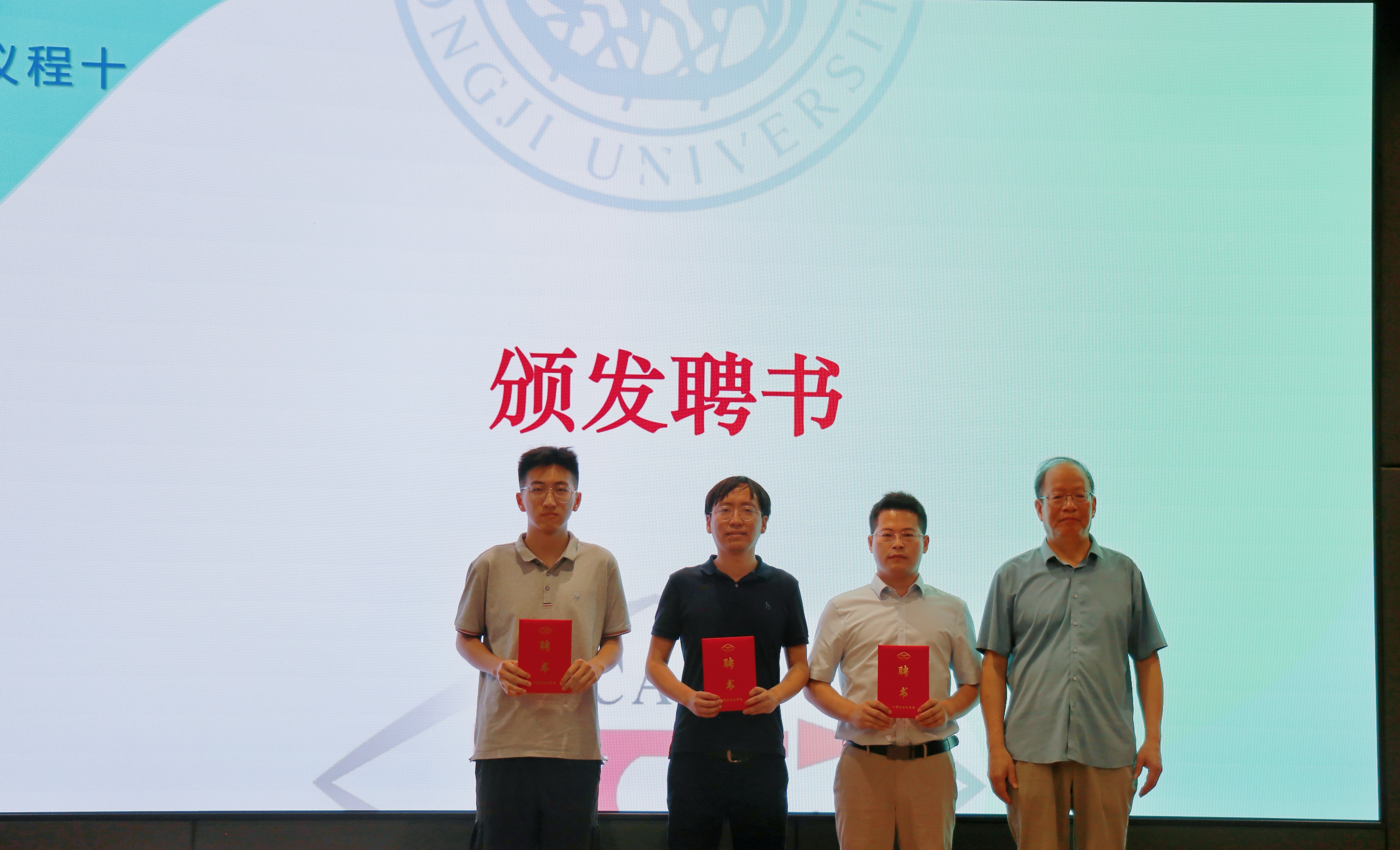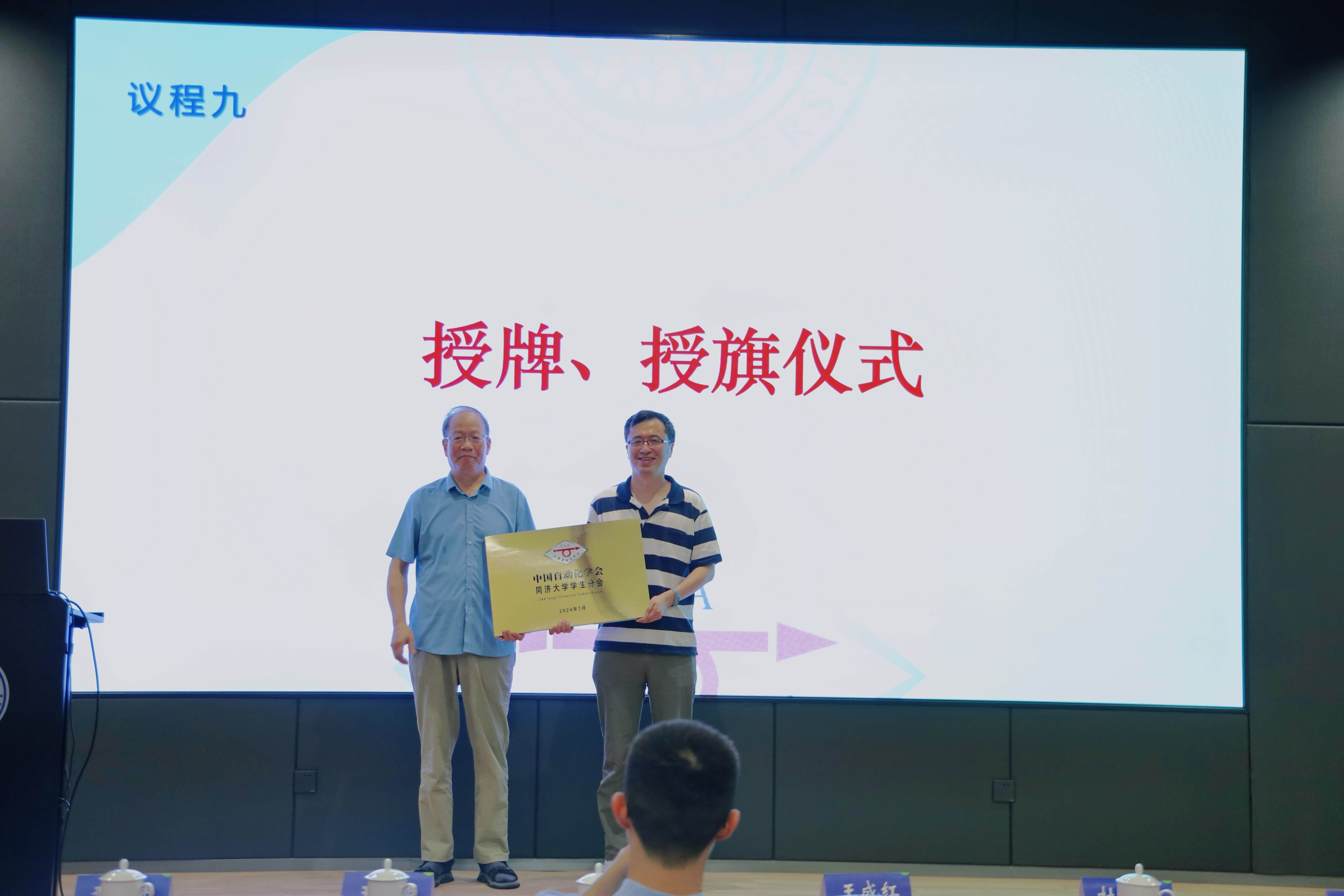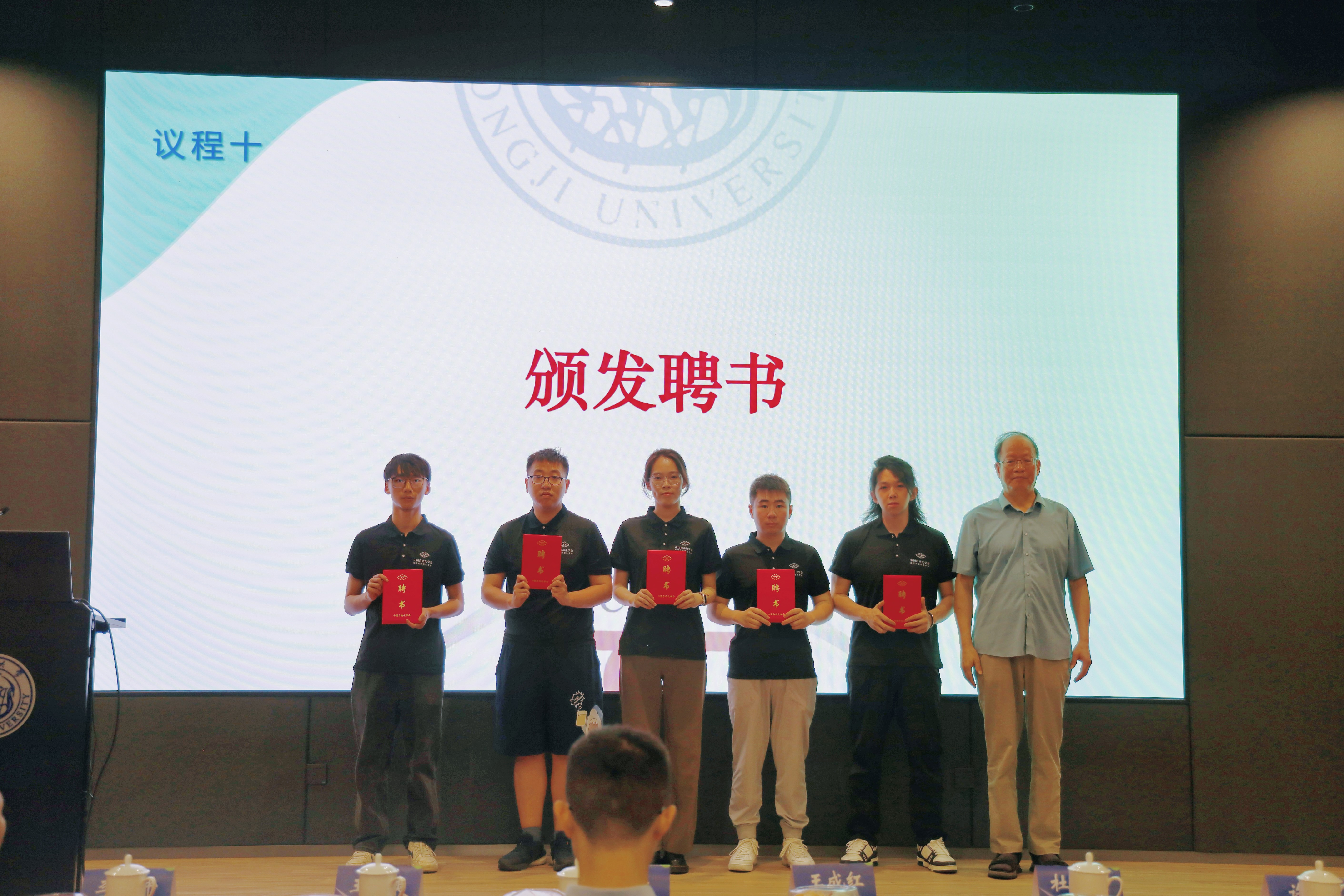 王成红副理事长代表欧冠联赛官网为同济大学学生分会授牌、授旗,周俊鹤副院长代表学校接受授牌和授旗。随后王成红副理事长为欧冠联赛官网同济大学分会指导委员会与执行委员会成员颁发聘书。