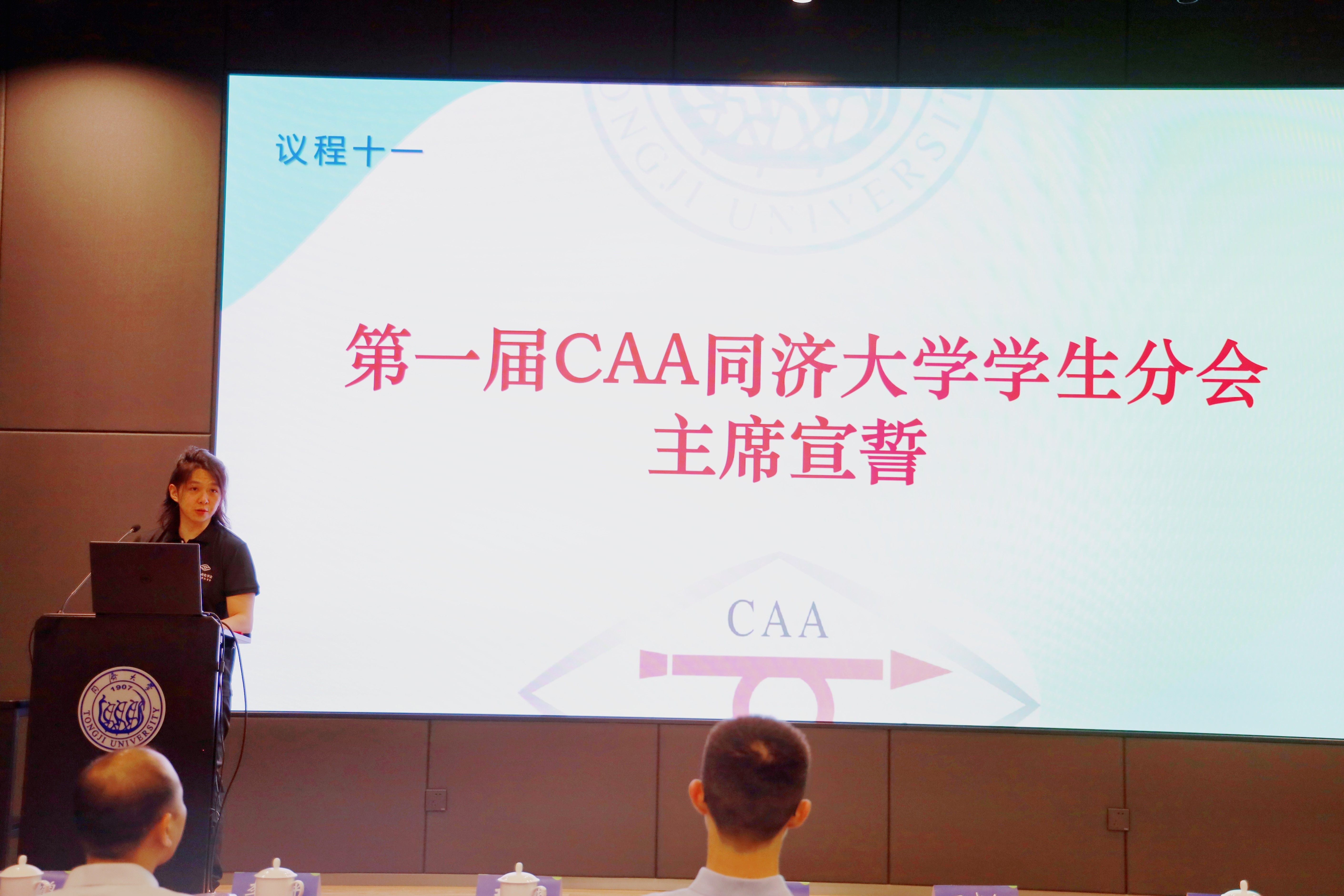 仪式完毕,第一届欧冠联赛官网同济大学学生分会主席乔壬路进行就职宣誓。