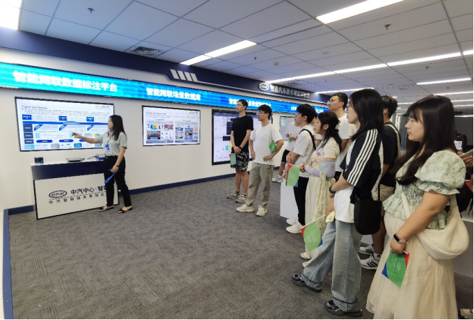 在中汽数据有限公司张森老师的引领下,同学们首先参观了“交通安全数智化”展厅,深入了解中汽数据有限公司在交通安全领域的数字化与智能化的建设成果和解决方案,听取了智慧装备、智能分析等技术的相关讲解。