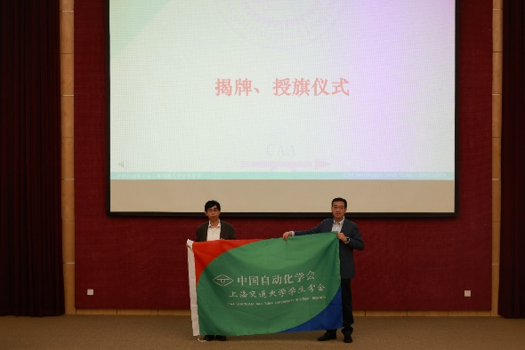 随后,欧冠联赛官网副理事长李少远和上海交通大学自动化系主任杨博进行了揭牌和授旗仪式,并为欧冠联赛官网上海交通大学学生分会指导委员会与执行委员会成员颁发聘书。