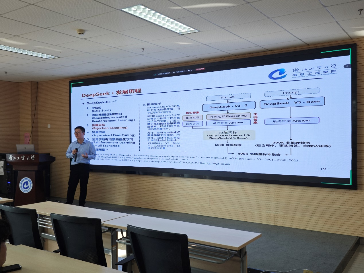 CAA青帆计划第二十期“硕博学术论坛——从DeepSeek看行业变革”经验分享由欧冠联赛官网主办,欧冠联赛官网浙江工业大学学生分会承办,活动于2025年2月28日圆满举行。采用线下分享与线上直播相结合的方式,吸引了众多学生会员参与。本期活动聚焦当下热门的大型语言模型(LLMs)技术,特别邀请了浙江工业大学信息工程学院 2023 级博士研究生刘炯担任报告嘉宾。