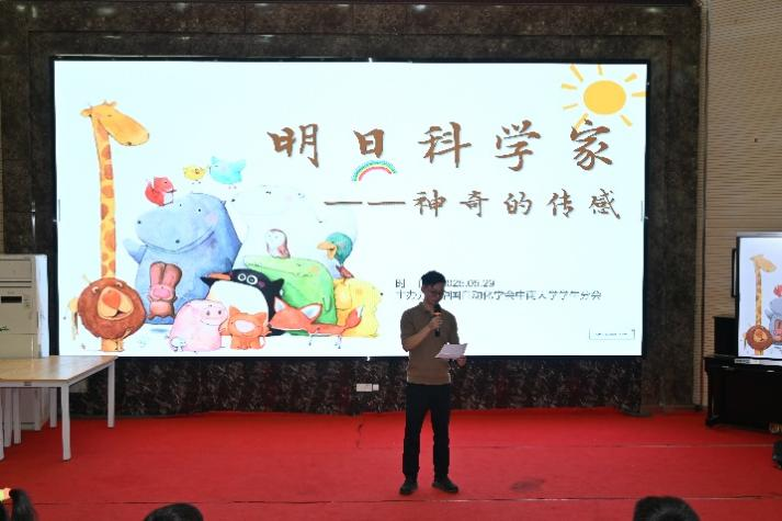 正式上课前,受邀前来的CAA中南大学学生分会指导委员罗旗舞教授为本次活动做开课演讲,罗旗舞简要介绍本次项目活动和授课相关科研前沿问题,同时向全教室百余位孩子表达的愿景,希望他们未来投身科研,做国家的栋梁之材。