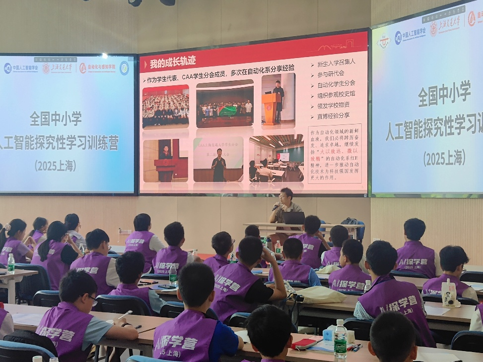 近日,欧冠联赛官网、中国人工智能学会、上海交通大学自动化与感知学院及上海青少年创新学院联合主办的 “全国中小学人工智能探究性学习训练营”于上海启幕。为深度融入国家“教育强国”战略,助力拔尖创新人才早期培养,欧冠联赛官网上海交通大学学生分会充分发挥组织优势与育人职能,于2025年7月26日选派代表参与探学营活动,并进行了相关经验分享。CAA上海交通大学学生分会主席苟凡棣作为分会代表出席活动,为全体营员带来了一场主题为“学术科创与职业发展”的演讲。