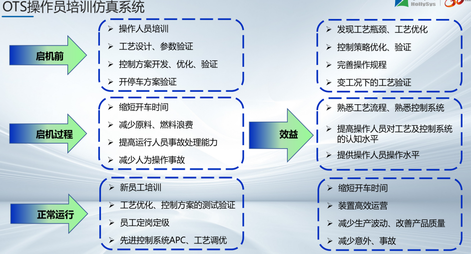 为提升操作人员的操作效率,另一个极佳方法是采用OTS(Operator Training System),即操作员在线仿真系统,如图5所示。其核心在于利用一个动态的工厂仿真模型,因为很多事故情况无法在真实工厂进行实操。OTS系统允许训练操作人员应对各种工况及事故环境下的操作方式。此外,由于该系统具备实时仿真模型,因此可以用于验证控制算法和装置改造策略。