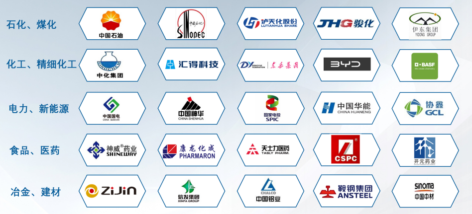 利时集团的典型客户群涵盖了炼化行业的中石油、中石化,化工行业的中化集团、东岳集团,电力行业的国家能源集团、国家电投等,以及食品医药行业和冶金建材行业,如图9所示。和利时将持续致力于为客户提供智能工厂的整体解决方案,为行业用户的数字化转型贡献自己的力量。