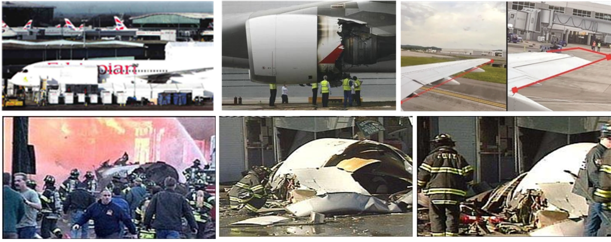 实际上,许多事故与复合材料检测不足有关,如图2所示。例如,2014年伦敦机场的波音787因复合材料发热导致熄火,2017年法航AF66因复合材料断裂导致引擎爆炸,以及2021年飞往加拿大的TP1477航班因复合材料方向舵断裂而发生险情。这些事件本质上反映了对复合材料微裂缝、层间断裂等力学失效机制的缺乏理解,同时也凸显了对相关有效表征测量方法的不足。