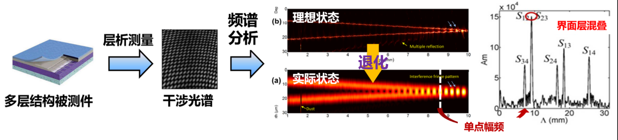 为了满足器件和材料的高性能检测要求,必须能够进行高精度的面型测量、多界面层析重构和内部形变动态检测。当前,光学相干层析技术是国际上最先进的方法之一,特别是在光学层析相干和干涉光谱的相位差方面。通过结合这些技术,可以实现复合材料内部的全场形变测量,监测固化过程,并进行亚微米级的内部层析检测。