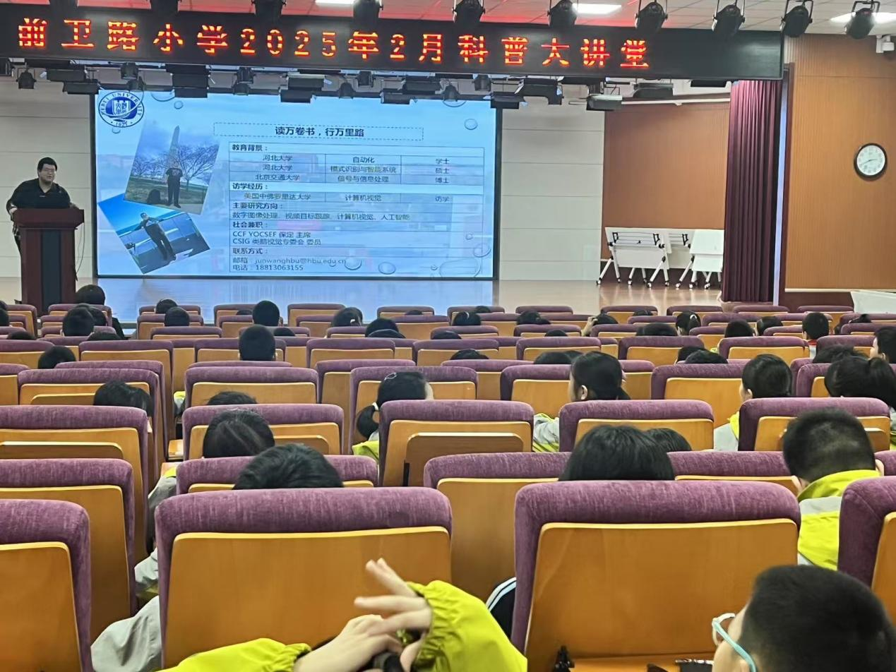 2025年2月28日,河北大学电子信息与智能制造科普教育基地与保定市前卫路小学联合主办了一次“前卫科普大讲堂”活动。此次活动以“人工智能浅谈”为主题,邀请河北大学电子信息工程学院副教授王珺担任主讲嘉宾,为学生们带来了一场生动的前沿科技知识盛宴。