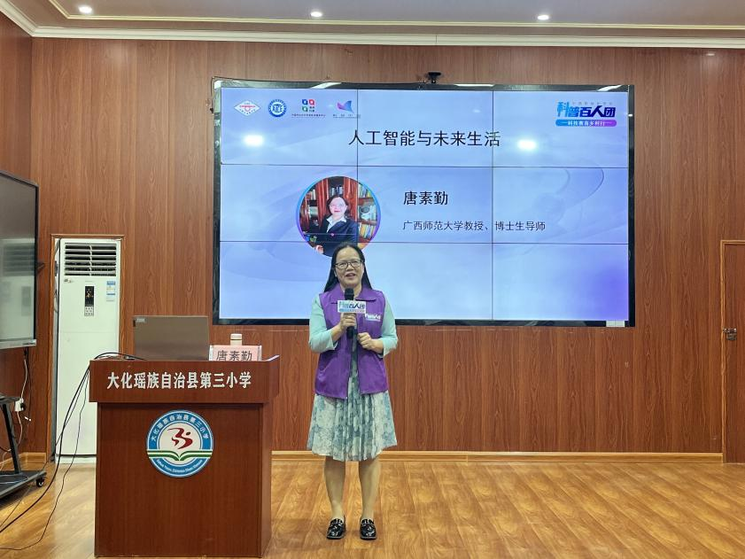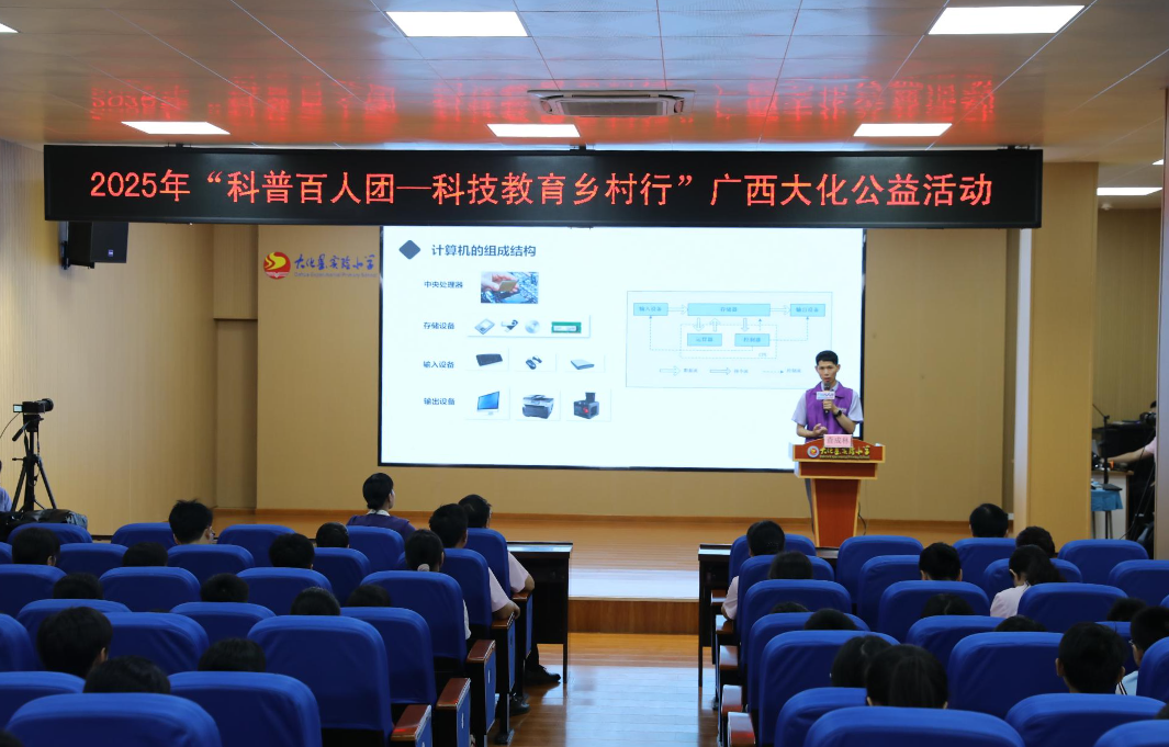 为进一步支持国家乡村振兴重点帮扶县,下沉优质科普资源,欧冠联赛官网(简称"CAA")联合中国科协农村专业技术服务中心共同开展2025年“CAA科普百人团——科技教育乡村行”公益活动。CAA普及工作委员会、CAA智慧教育专业委员会、广西壮族自治区科学技术协会、河池市科学技术协会和大化瑶族自治县科学技术协会共同承办“科普百人团一科技教育乡村行·广西大化瑶族自治县”公益活动。5月8日,科学家引领科普百人团“线上+线下”开讲,走进大化瑶族自治县高级中学、大化瑶族自治县实验中学、大化瑶族自治县实验小学、大化瑶族自治县第三小学和大化瑶族自治县新城小学“讲好一堂人工智能启蒙课”,为青少年提供一个了解人工智能的平台,将科技送到孩子们的身边,提高青少年对人工智能的认识和兴趣。