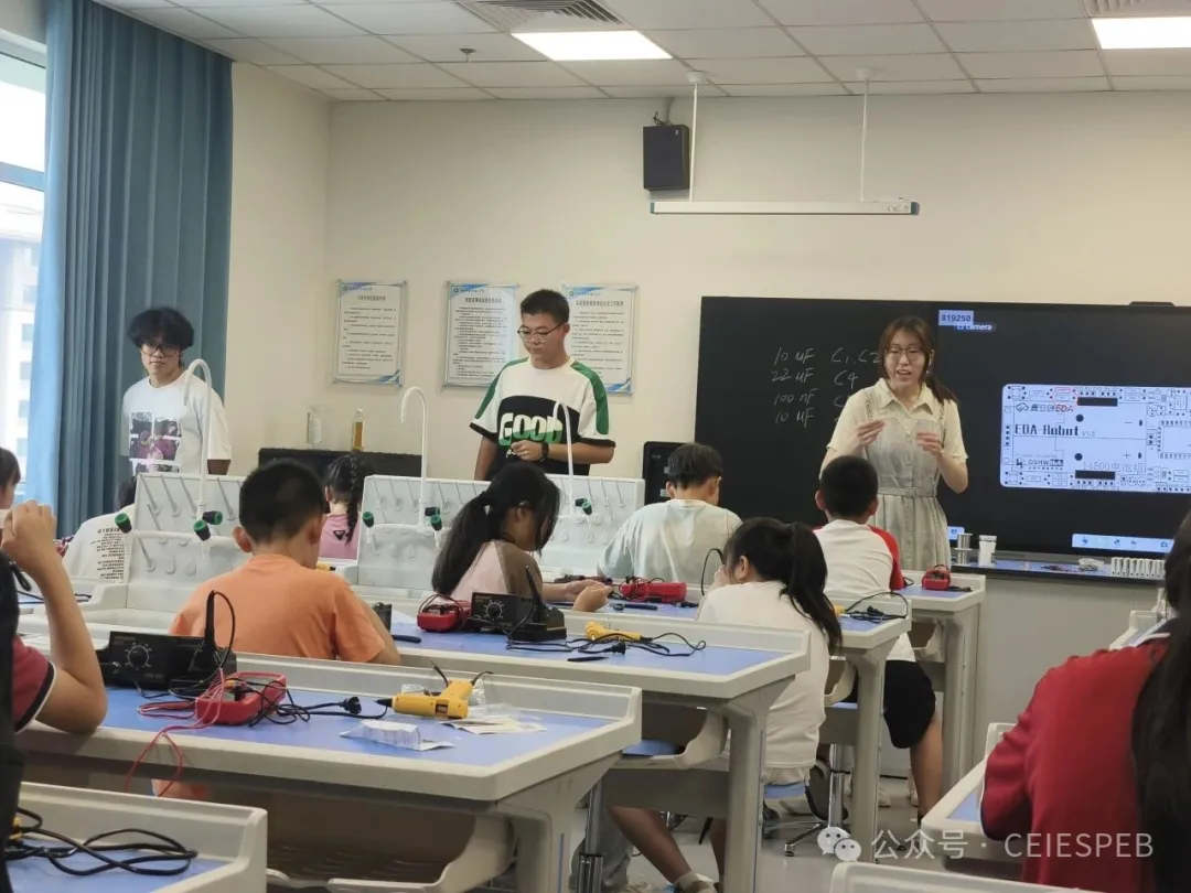 志愿者们通过“理论讲解+动手实操”的模式,带领小学生们从零开始完成电子产品制作,让孩子们在实践中感受科技的魅力。在志愿者的悉心指导下,一个个原本只存在于图纸上的电路,在孩子们灵巧的双手下,变成了闪烁着光芒的电子产品。从电路设计到元器件的识别再到电路焊接,孩子们在实践中学习,在错误中成长,体验到了将创意转化为现实的成就感。